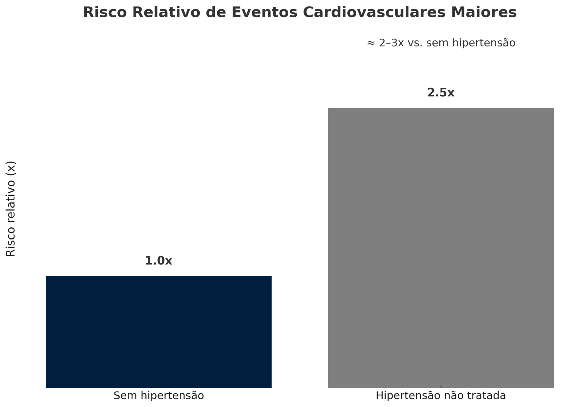 Em primeiro lugar, está a elevação dos níveis de pressão arterial. Segundo o estudo, valores acima de 120 x 80 mmHg já configuram um risco aumentado para a ocorrência de eventos cardiovasculares.