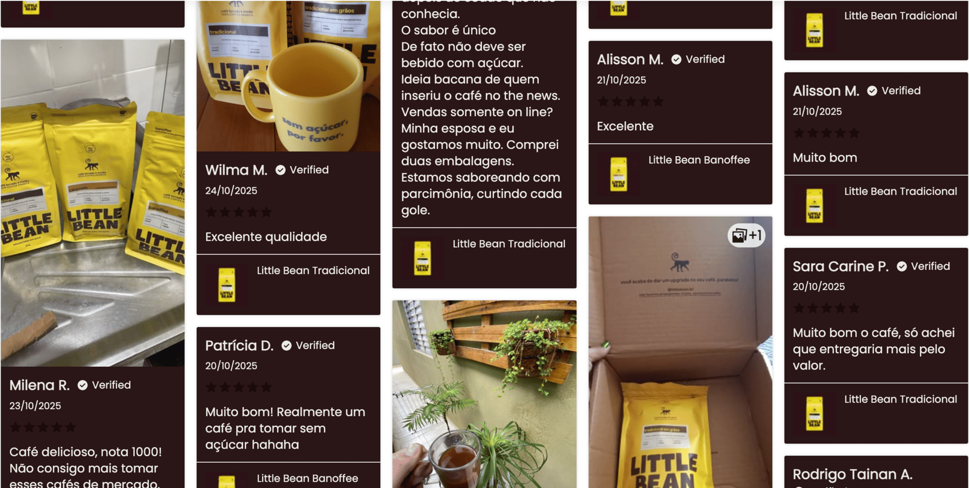 Esses abaixo são alguns dos 317 reviews do Little Bean, o primeiro café feito para ser bebido ser açúcar. Uma avaliação de 4,8 de 5,0.